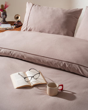 Arabiyeli pamuklu çift kişilik nevresim takımı, zarif detayları ve yumuşak dokusuyla yatak odalarına şık bir dokunuş kazandırır. Arabiyeli tasarım, sade görünümü küçük ama etkili detaylarla zenginleştirerek klasik ve modern dekorasyonlara uyum sağlar. Kahverengi tonunun sıcaklığı, yatak odasında huzurlu bir atmosfer oluşturur.