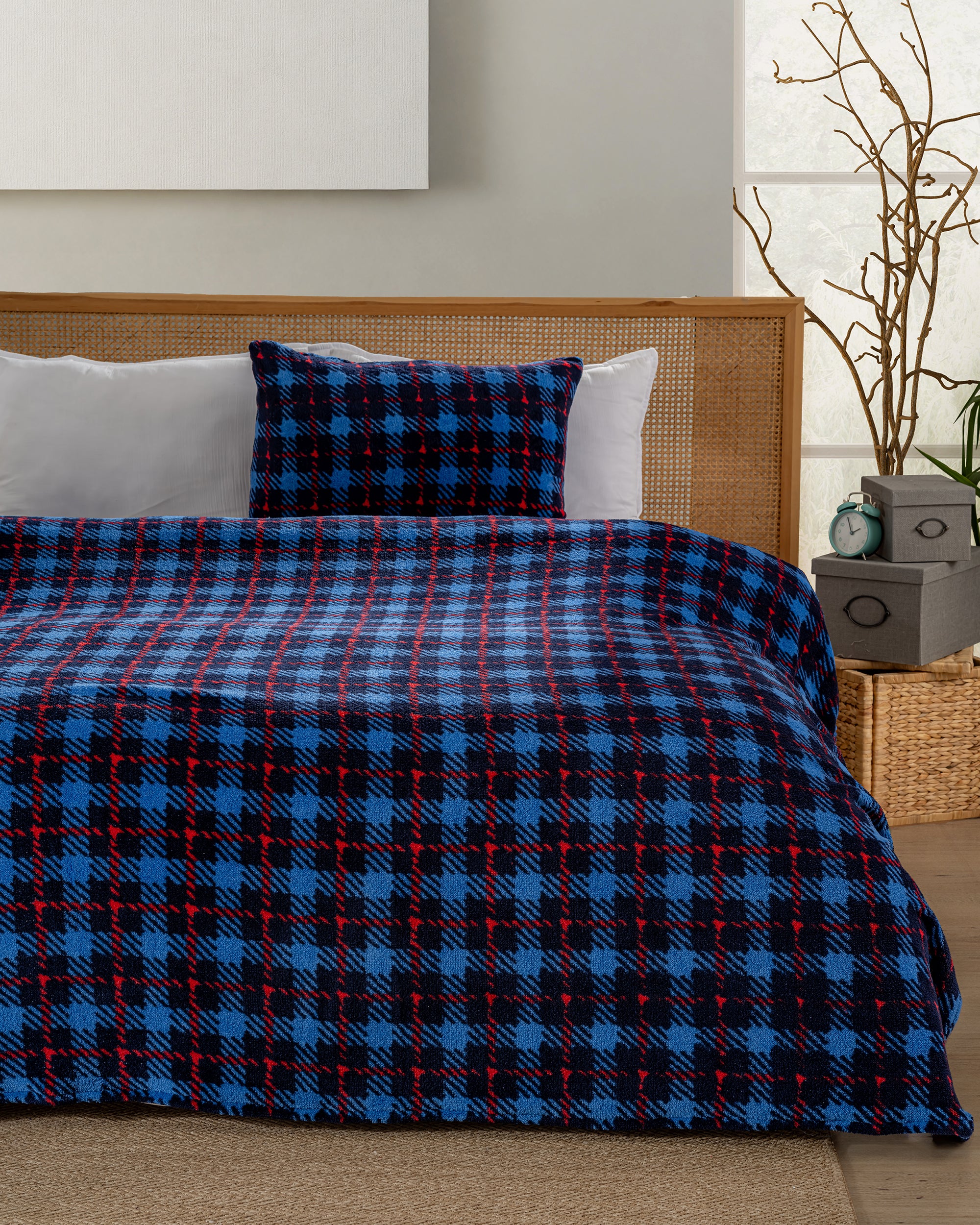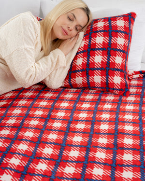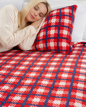Kırmızı Ekose Desenli Çift Kişilik Wellsoft Battaniye & Yastık Kılıfı