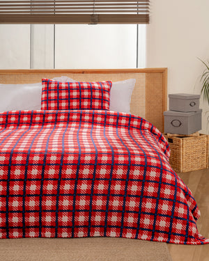 Lacivert Ekose Desenli Tek Kişilik Wellsoft Battaniye & Yastık Kılıfı