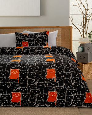 Siyah Kedi Desenli Çift Kişilik Wellsoft Yorgan & Yastık Kılıfı