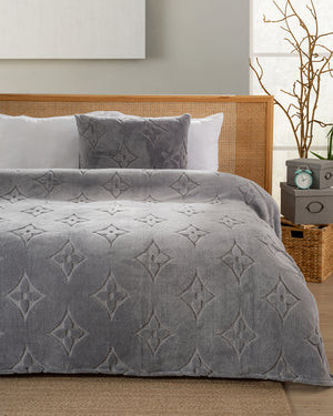 Gri Baklava Desenli Wellsoft Battaniye & Yastık kılıfı